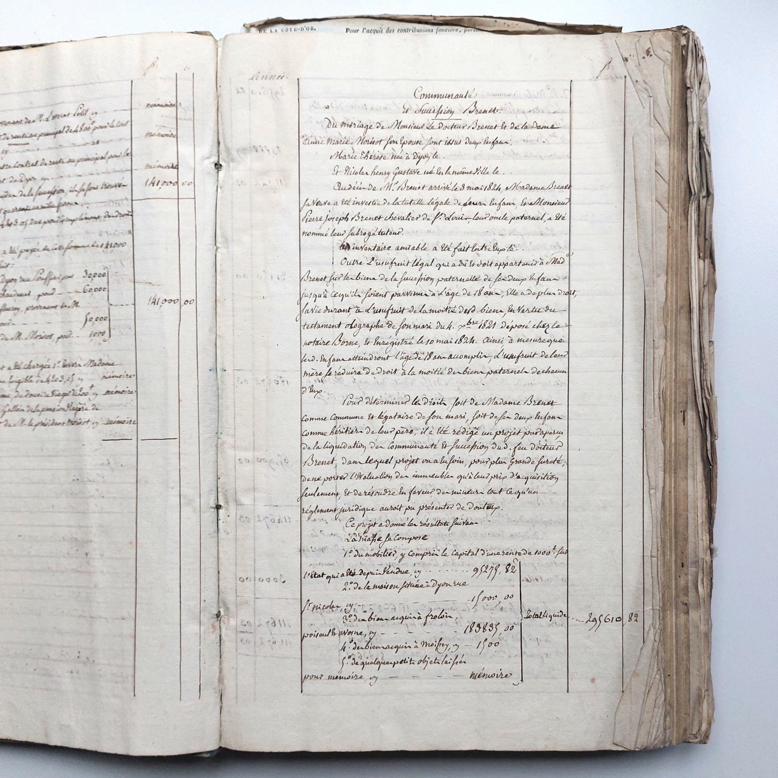 Très intéressant document intéressant la Bourgogne détaillant l'administration de la veuve du célèbre médecin et député Henry Brenet (1764-1824) dans le second quart du XIXe siècle.