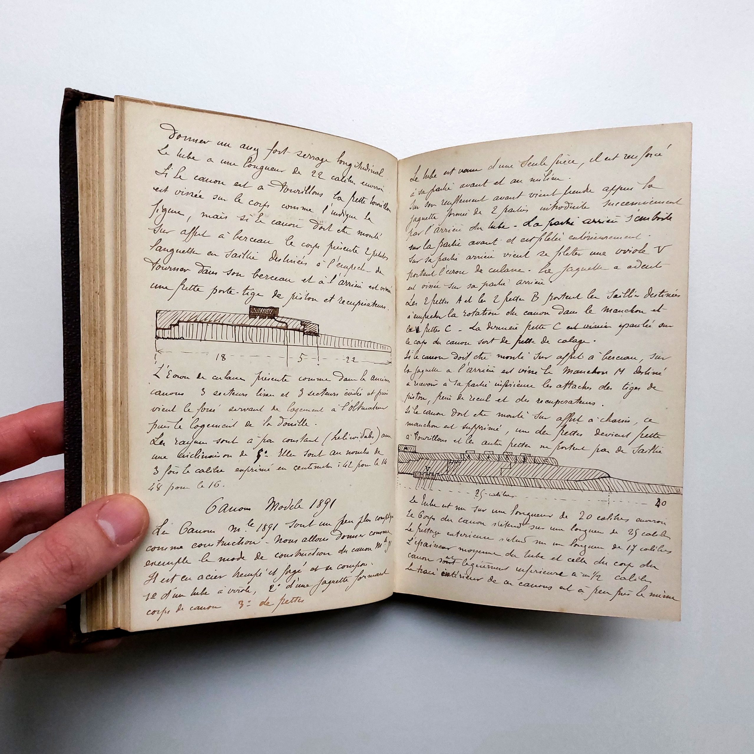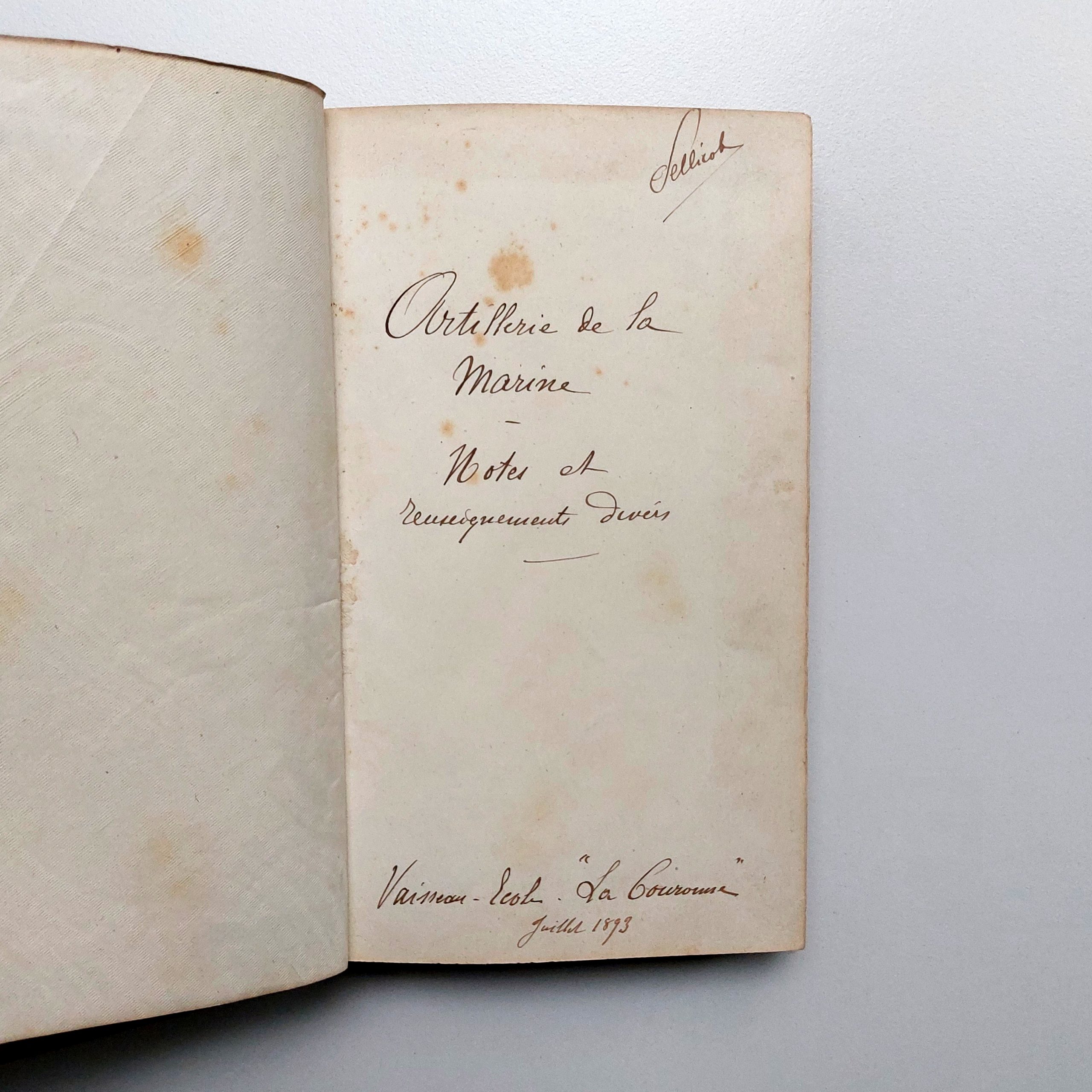 Intéressants cours manuscrits pris sur les vaisseaux-écoles La Couronne et Saint-Louis à Toulon, avec quelques schémas.