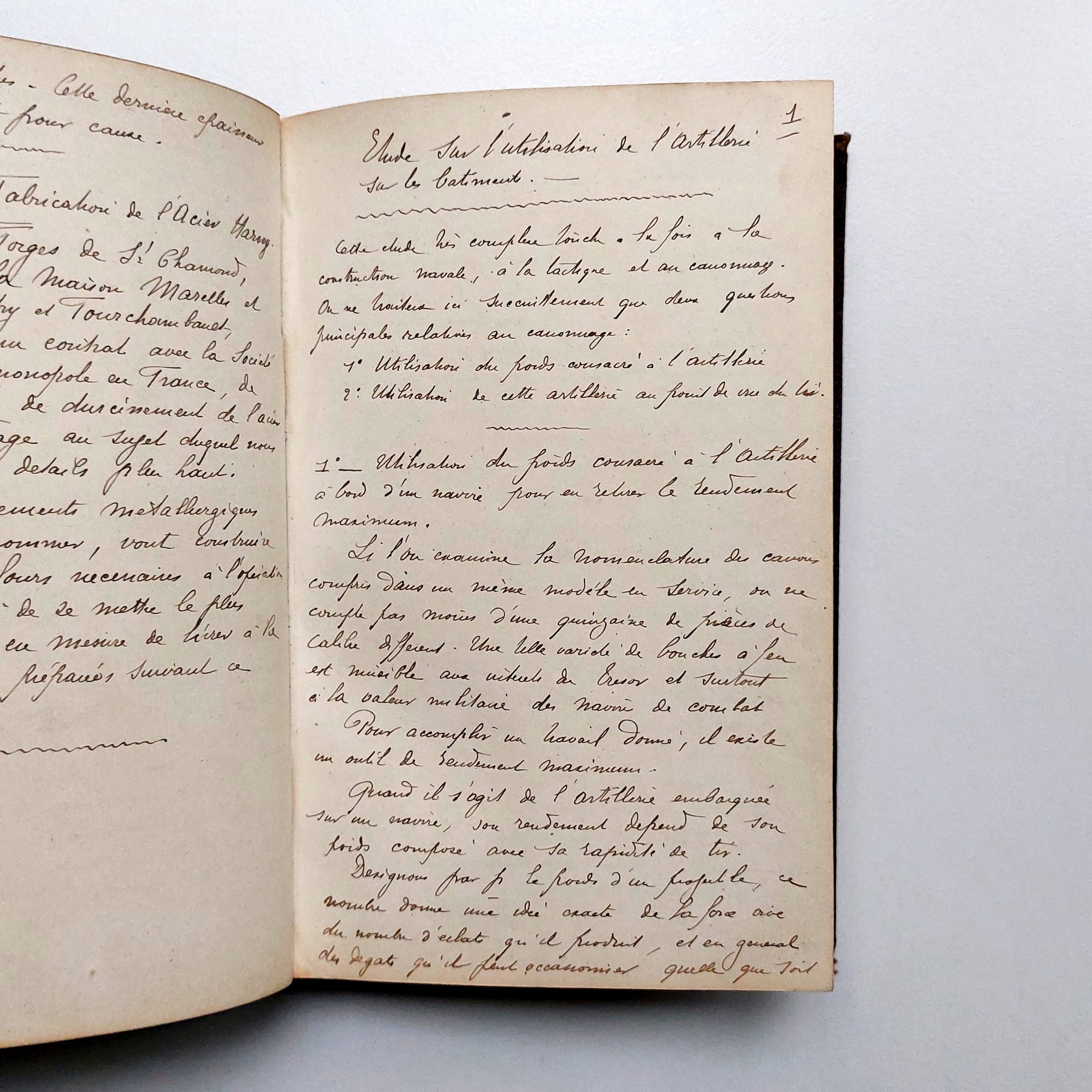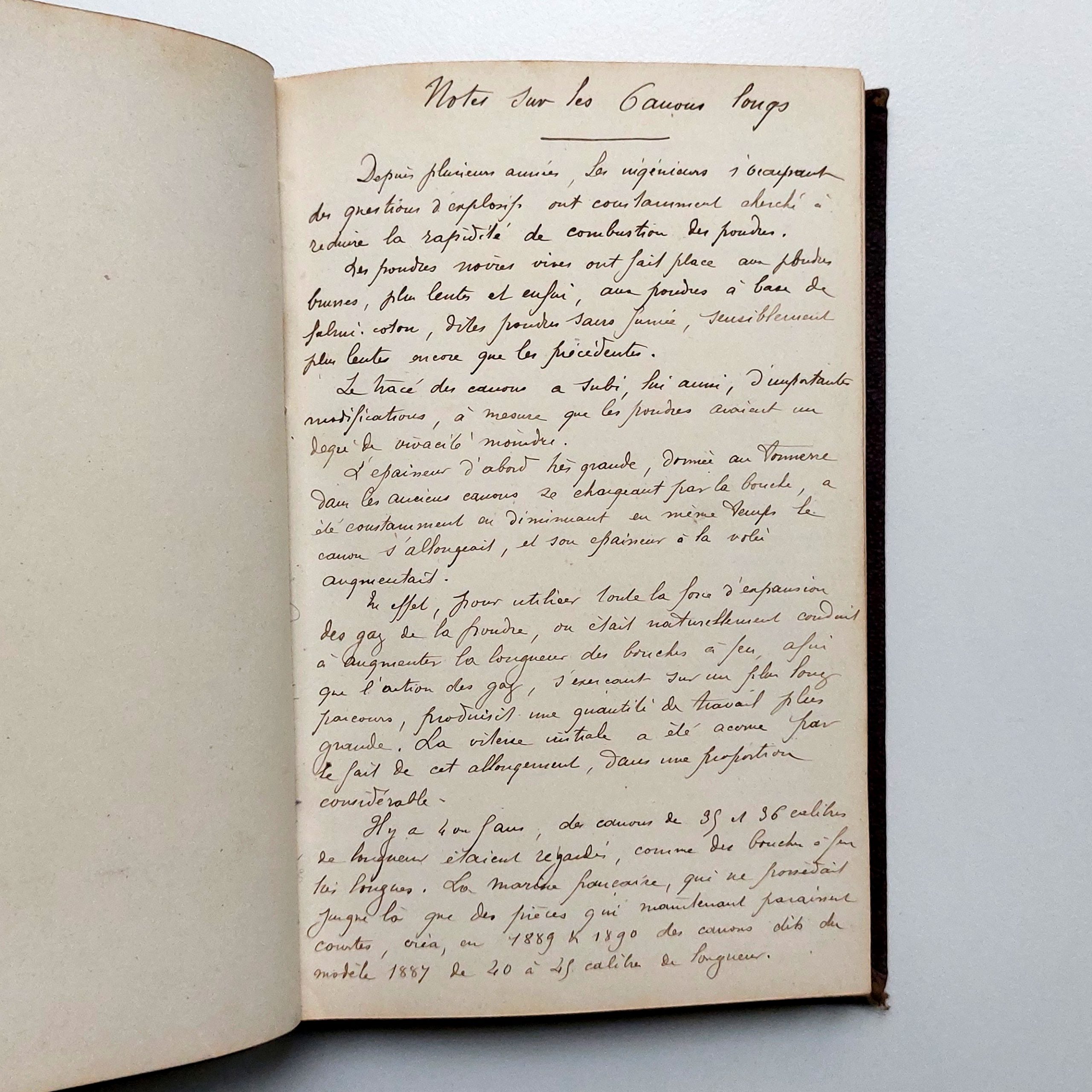 Nombreux chapitres : Balistique, Etablissements des tables de tir, Agents explosifs (propriétés des explosifs, fabrication, emplois, etc), Différents modèles d'artillerie en service (modèle de 1870 à 1881), Des rayures, Des projectiles, Notes sur les Canons longs, Etude sur l'utilisation de l'Artillerie sur les bâtiments, Armement d'une forteresse maritime, Conférence de M. le Cap d'Artillerie Thouart (?) sur l'artillerie actuelle (1894), Etude sur la conduite du tie contre un but mobile, De la Conduite du tir dans les différents genre de combat d'artillerie, et d'autres articles.