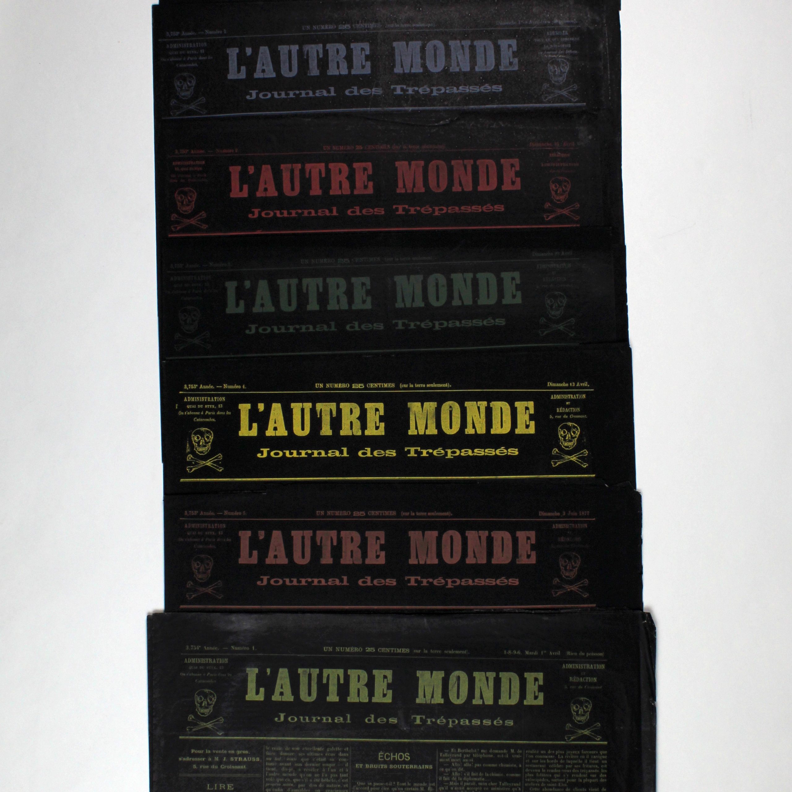 Collection complète de ce très rare journal aussi macabre qu'humoristique, imprimé à l'encre de couleur sur papier noir.