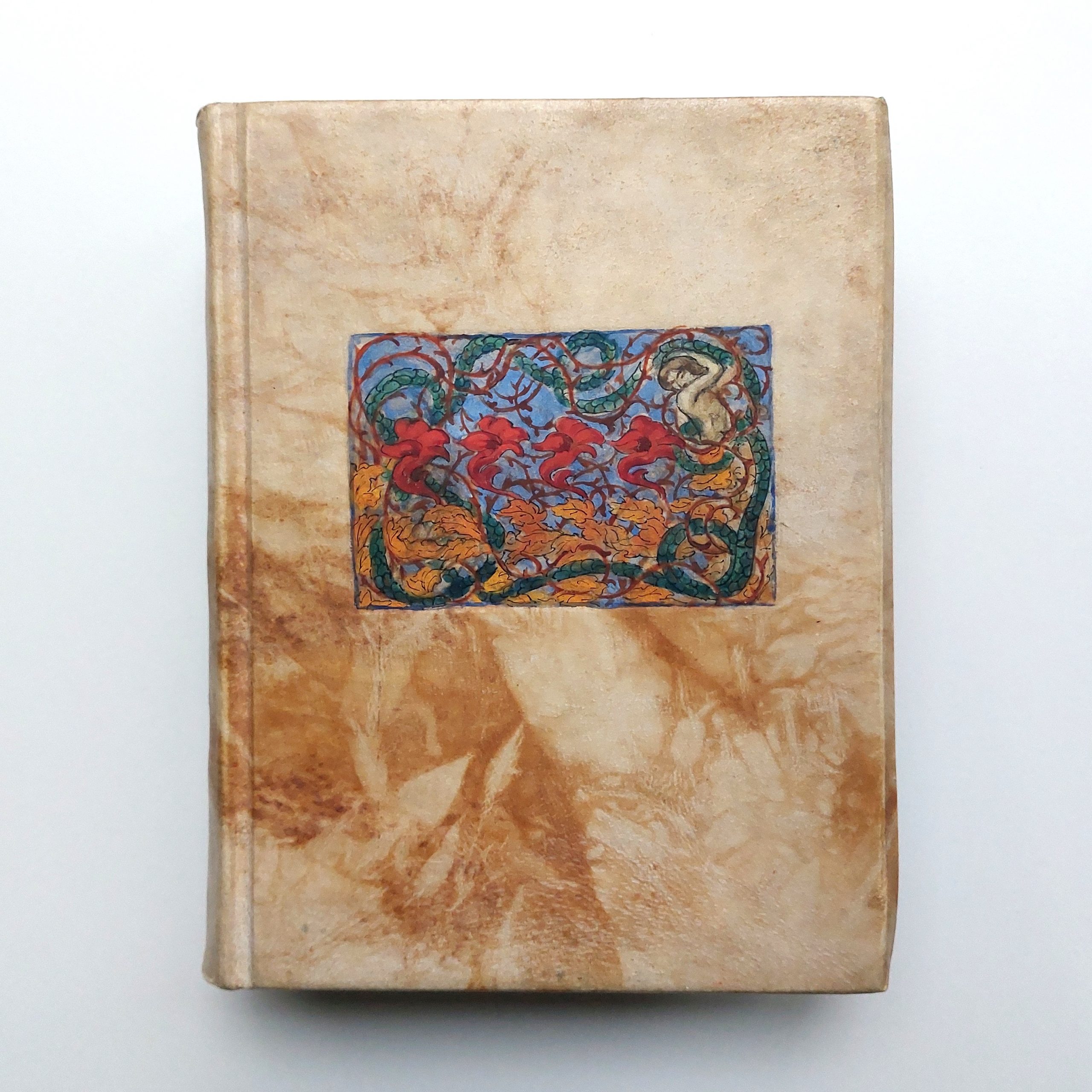 In-8 (205 x 160 mm), bradel vélin marbré à recouvrements, dos lisse, décors peints sur les plats et le dos, tête dorée, non rogné, couverture et dos ; quelques rousseurs (W. Degott, Relieur d’Art, 6 rue des Ursulines Paris Ve).