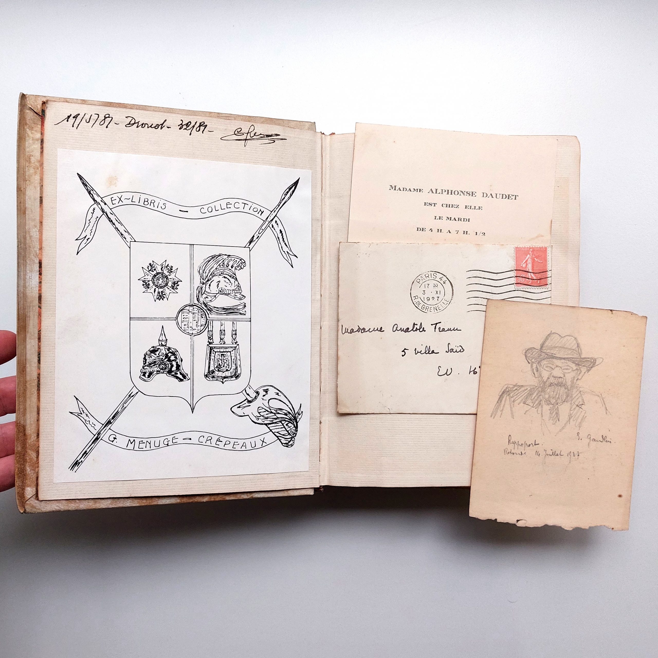 L'ouvrage est par ailleurs enrichi d’une invitation de Madame Alphonse Daudet à Madame Anatole France de 1927 conservée sous enveloppe, et d'un portrait original à la mine de plomb de Charles Roppoport fait sur le vif à la Rotonde à Paris le 14 juillet 1927.