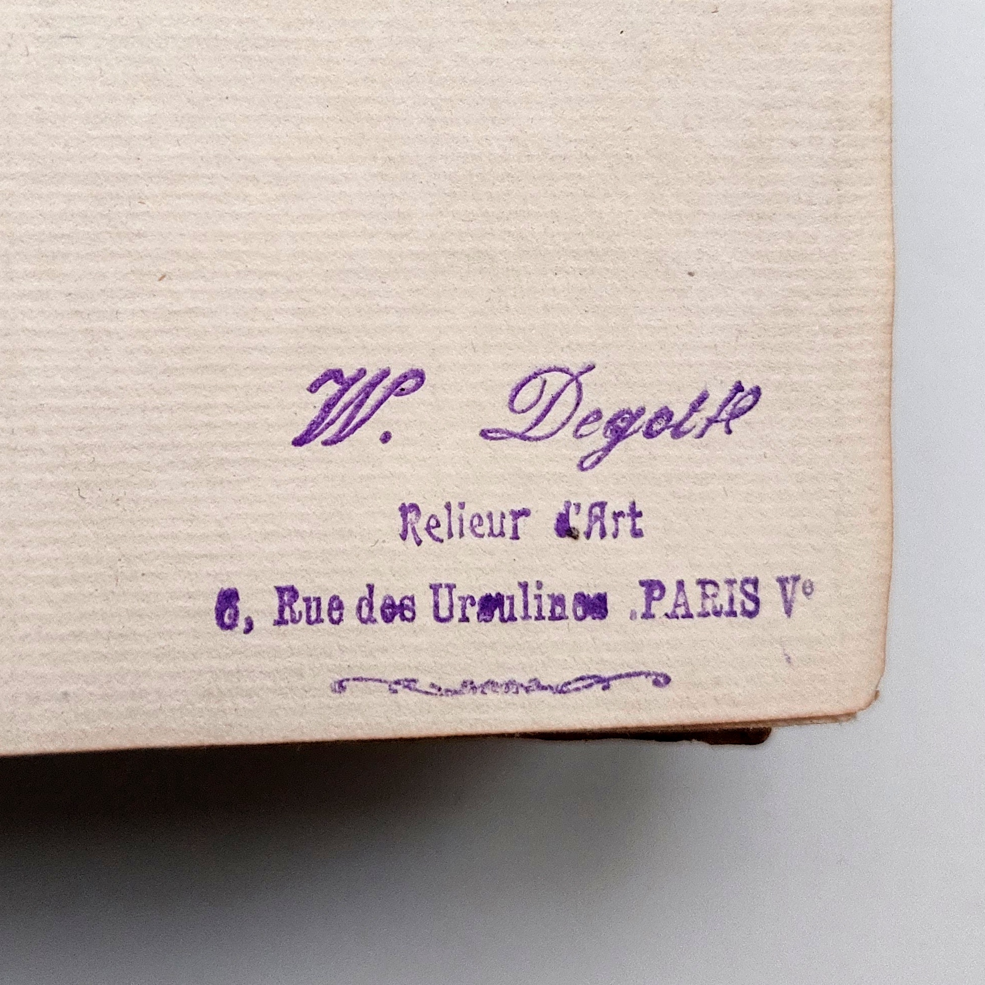 Exemplaire selon toute vraisemblance relié par le relieur bolchévik Wladimir Degott (1889-1944), avec son tampon "W. Degott, Relieur d’Art, 6 Rue des Ursulines Paris Ve" sur une garde.